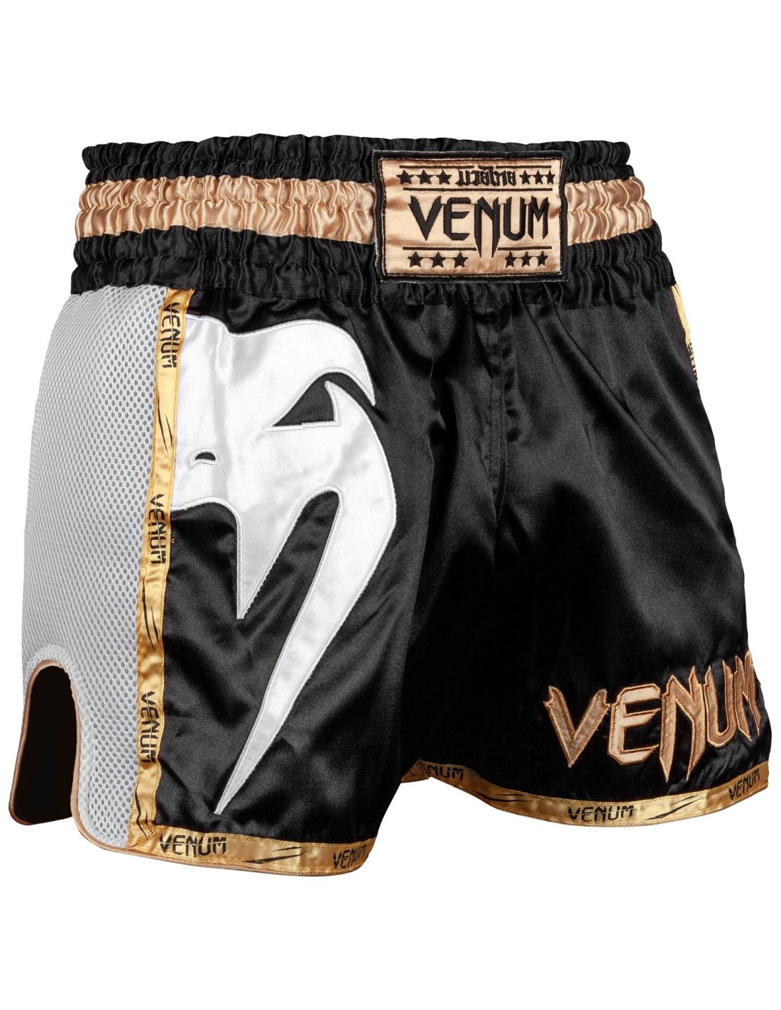 Fabriqué dans la pure tradition thaïlandaise, le short de muay thai Venum Giant se compose d’une matière satinée de haute qualité qui le rend particulièrement résistant