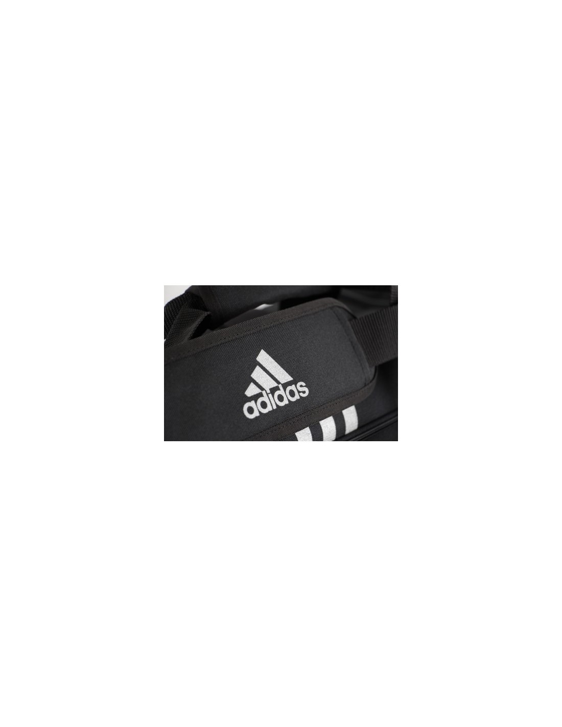 Sac d'équipe en matière extérieure PES. Intérieur polyester nylon. Fermeture zip sur le dessus. Quatre rivets métalliques au fond. Deux poches dotées d'une fermeture zip de chaque côté. Ce sac a été conçu pour les entraînements ou les tournois par équipe. Logo adidas imprimé sur un côté et trois bades imprimées sur le dessus.
