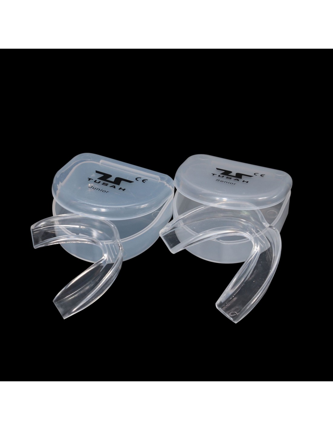 Ce protège-dents transparent Basic de Tusah est uniquement à mâchoire supérieure. Le protège-dents peut être simplement personnalisé en utilisant de l’eau chaude et en le façonnant selon vos propres besoins.