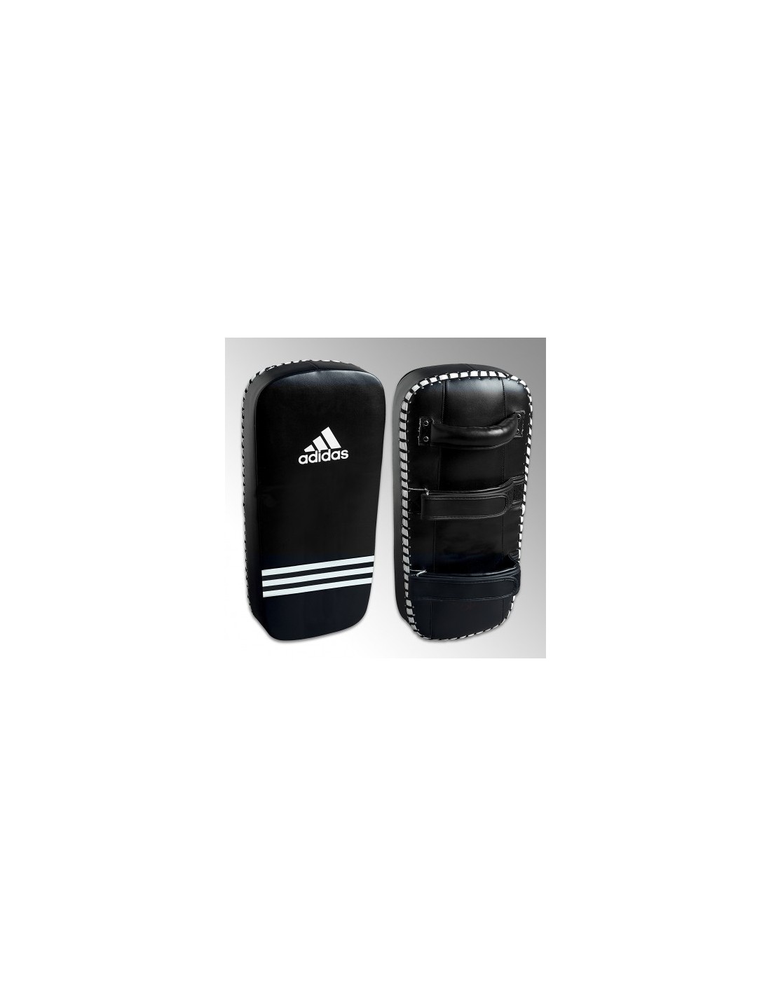 Bouclier de frappe type thaï ultra-épais en PU résistant. Arrière tissé pour une durabilité accrue. Rembourrage de qualité supérieure adapté à une utilisation intensive. Poignée renforcée, attache par double scratch rigide sur le poignet et l’avant-bras pour un ajustement parfait. Logo et trois bandes adidas imprimés directement sur le bouclier. Coloris : noir. Dimensions : 41 x 20 x 12 cm.