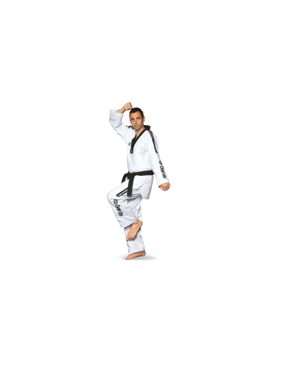 Master Taekwondo Dobok en tissu de haute qualité avec motif étoilé, bandes “Taekwondo” et broderie “Daedo”. Léger, durable et confortable, il offre liberté de mouvement et performance pour l’entraînement et la compétition.