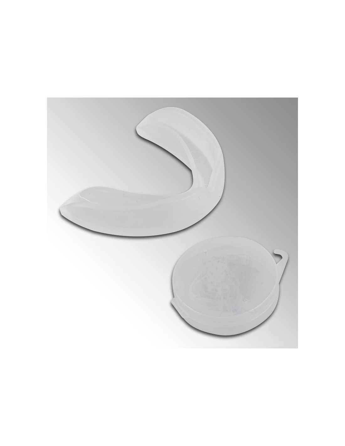 Protège-dents double en matière thermoformable. Livré avec boîtier. Coloris : transparent. Taille : Senior