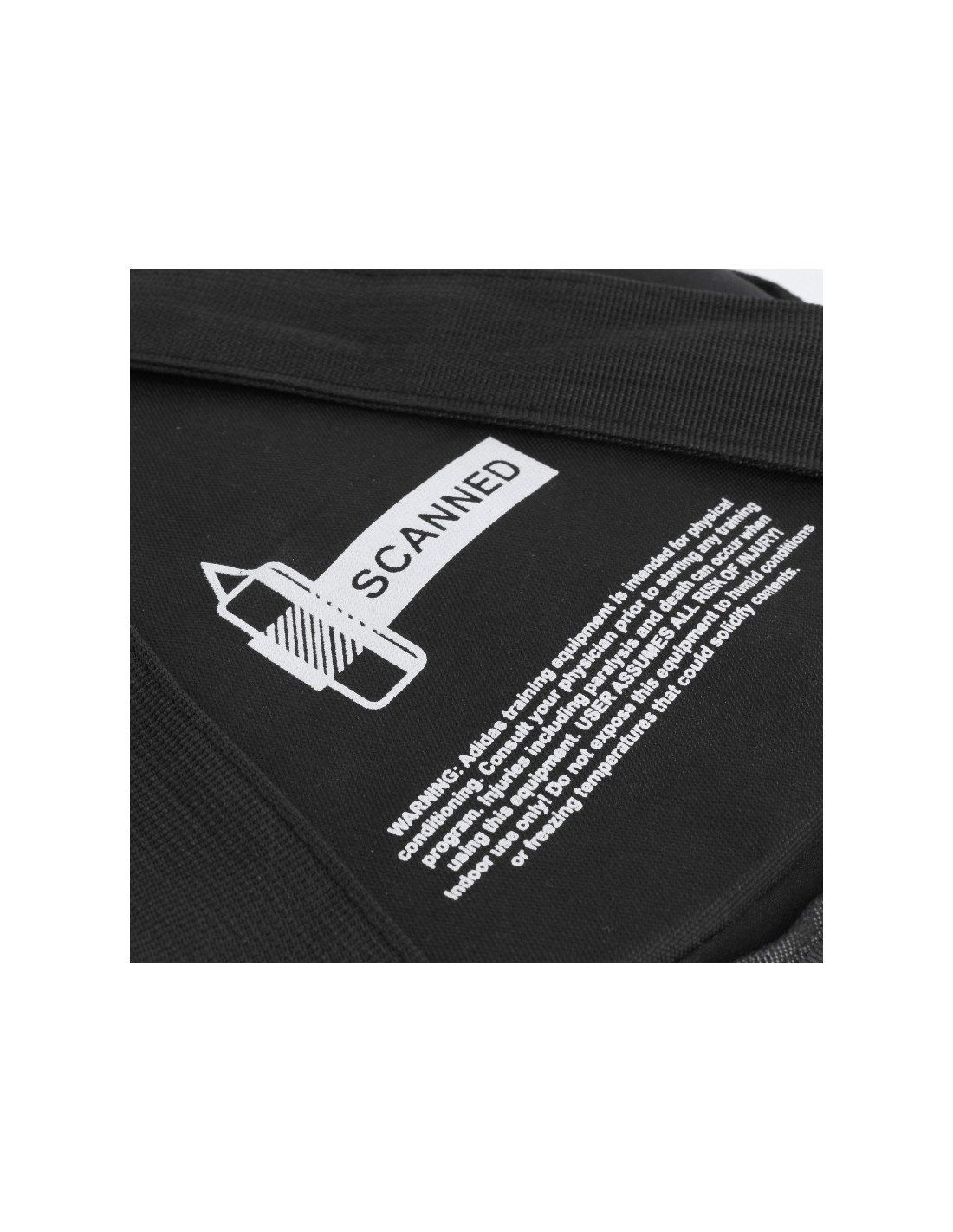 Bokszak "polyester parLichtgewicht parachute type polyester bokszak. Ophanging door vier nylon banden en gegalvaniseerd multidirectioneel kogelgewricht. Versterkte banden en zelfsluitende ritssluiting aan de bovenkant. Dit accessoire is ontworpen voor een kennismaking met boksen en voor thuisgebruik. Het is niet geschikt voor regelmatig en intensief boksen. De tas is alleen gevuld met restjes stof. Inhoud geverifieerd door scanner voor uw veiligheid. Elegant adidas-logo en drie horizontale strepen direct op de tas gedrukt. Kleuren: zwart. Afmetingen: 90 x 30. Gewicht: 20 kg.achute"