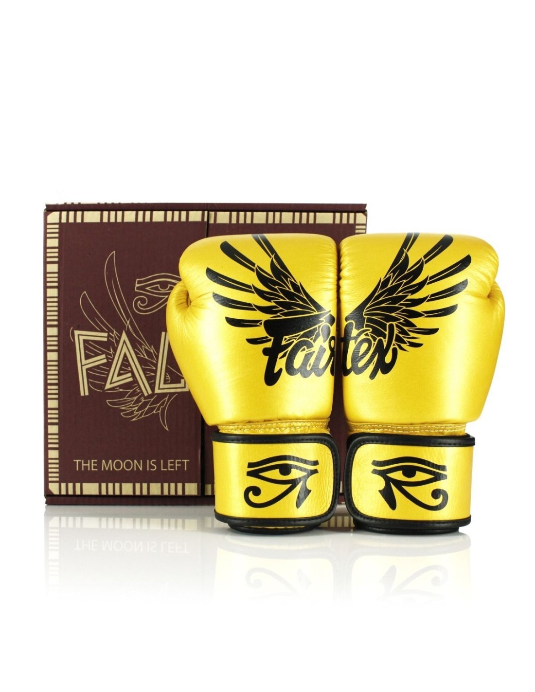 Voor het ontwerp van de Falcon-bokshandschoenen combineerde Fairtex de schitterende uitstraling met een oude Egyptische godheid, de valkgod Horus, wiens naam "hij die boven is" betekent.