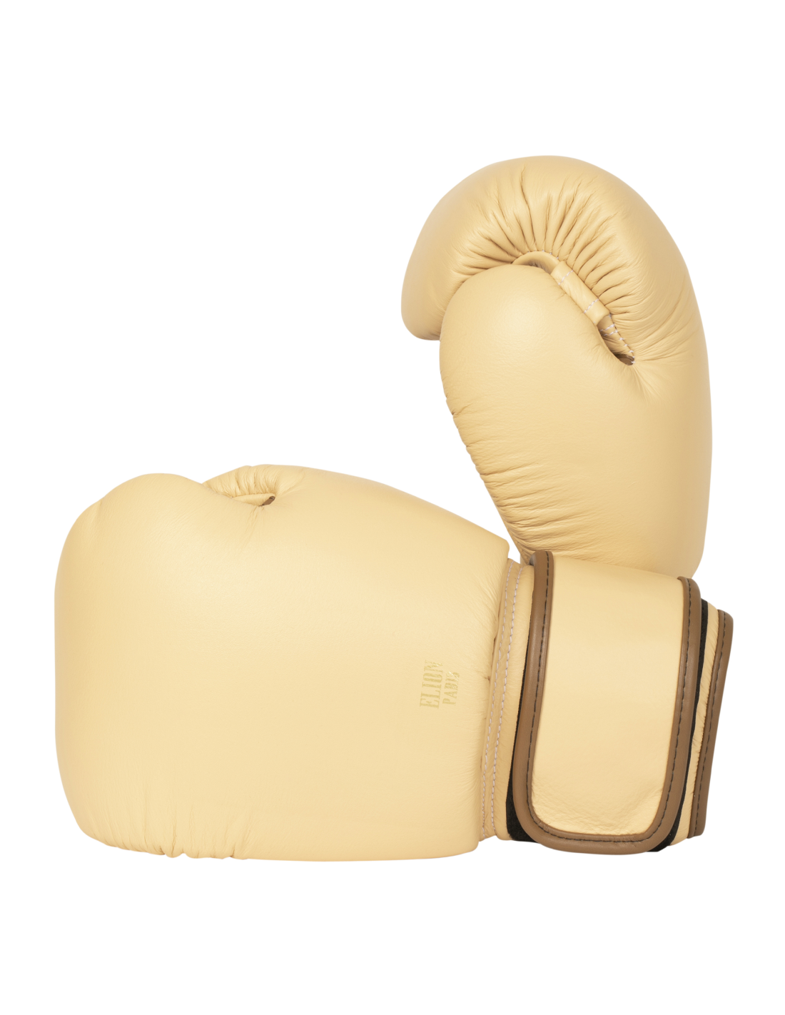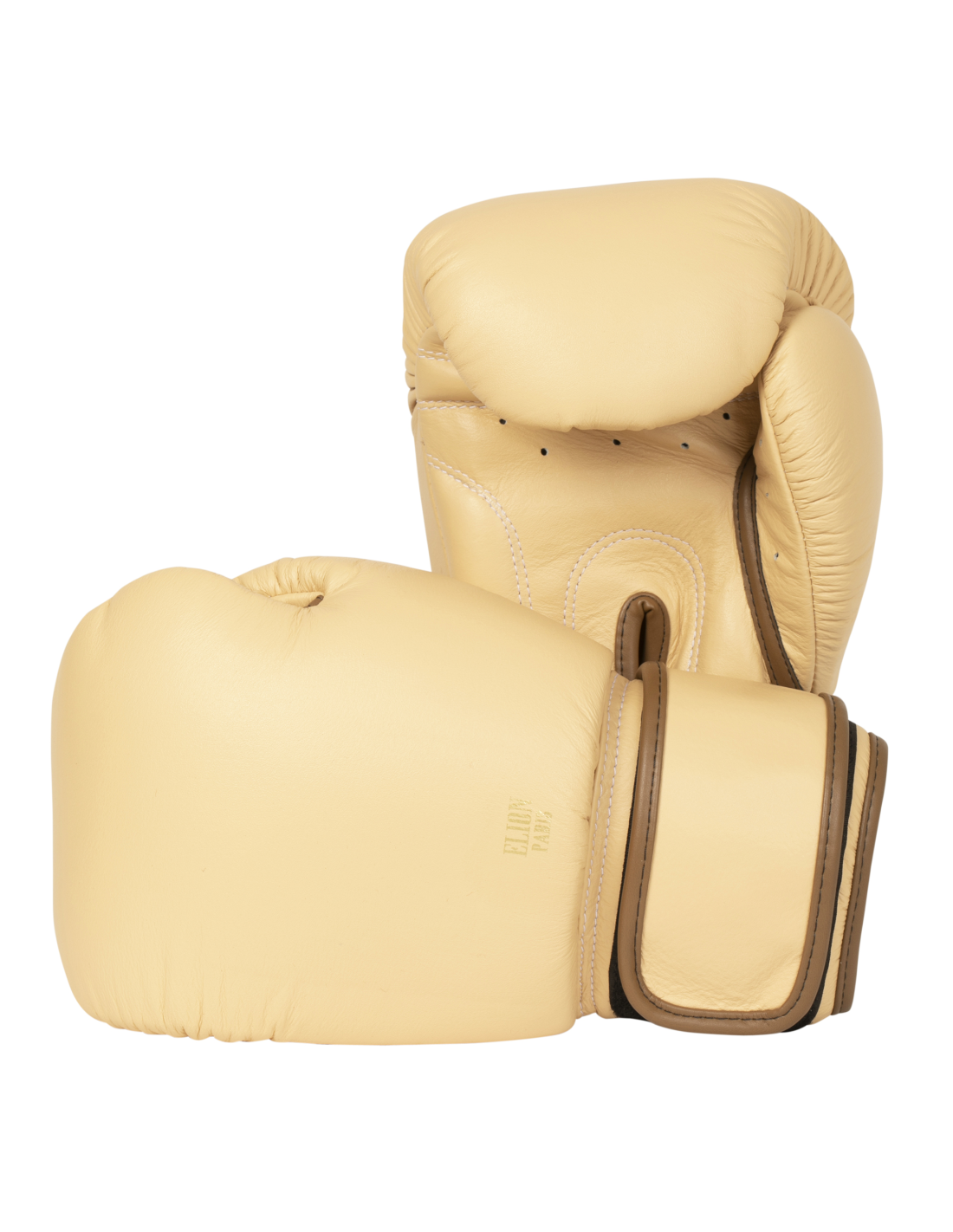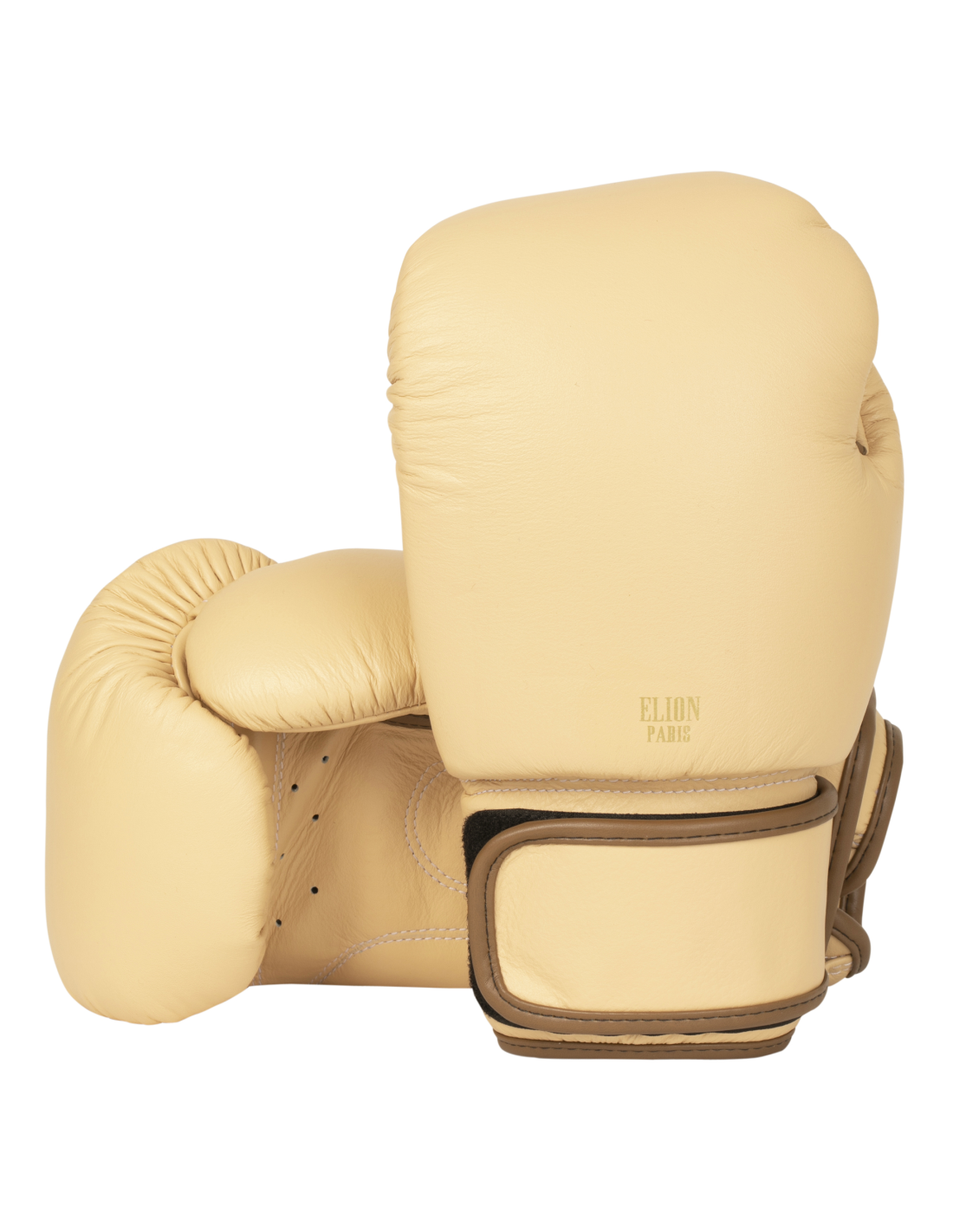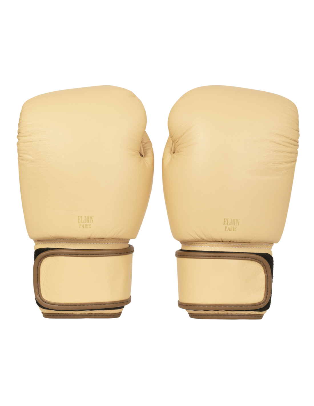 Gemaakt van generfd crèmekleurig leer, koffiebruine stiksels en subtiel afgewerkt met een gouden “ELION Paris” logo, toont het Parijse merk zijn vakmanschap met een high-end paar bokshandschoenen in alle eenvoud, waardoor de essentie van een bokshandschoen duidelijk naar voren komt.