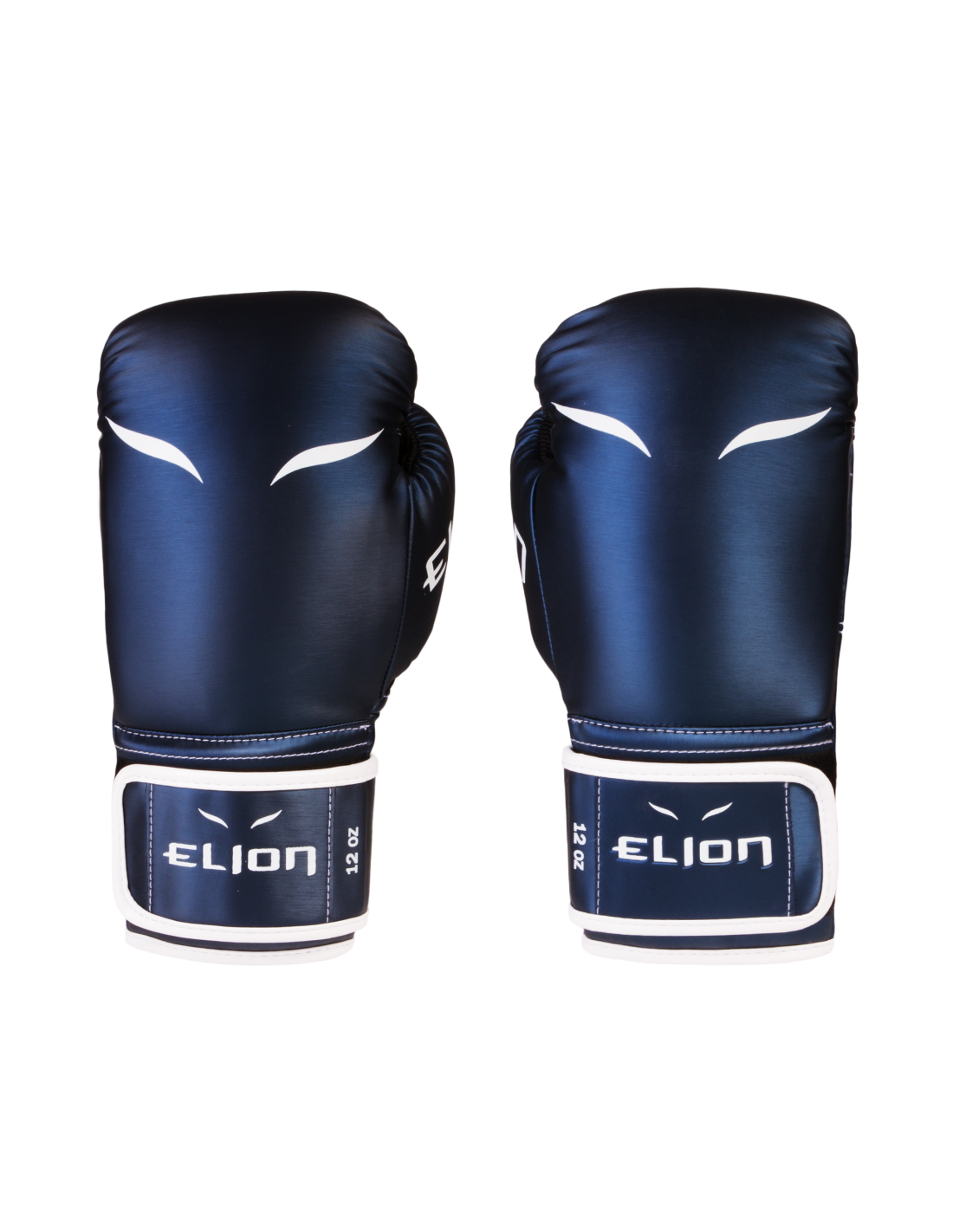 ELION koos voor deze blauwe bokshandschoenen een Skintex met metallic-look, zijdezacht aan de aanraking, zonder concessies te doen aan duurzaamheid en levensduur.